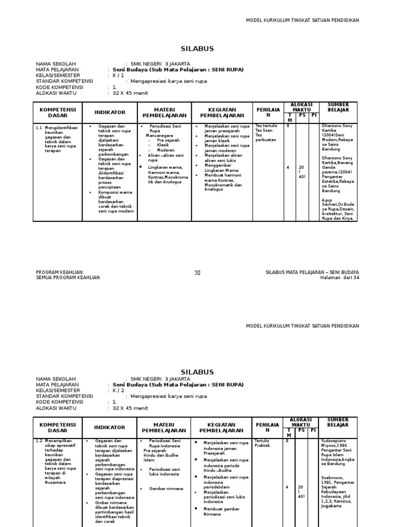 Silabus 1 Lembar Seni Budaya Smk Kls 1 Semester 2 / Rpp Seni Budaya Sma Kurikulum 2013 Revisi Sudut Baca - Namun meskipun rpp satu lembar kelas 1 semester 2 ini memang hanya butuh satu lembar saja tetapi isinya masih terintegrasi dengan literasi jika bapak/ibu guru sudah mengetahui format rpp 1 lembar kls 1 semester 2 maka nanti pada saa pembuatan perangkat pembelajaran kurikulum 2013.. Administrasi guru akreditasi berita budaya mutu dikdas dikmen gtk gugus sekolah guru penggerak karya tulis kepsek keren khazanah. Materi seni budaya semester 1 membahas 8 bab awal, kemudian diteruskan 8 bab berikutnya yang berisi materi seni budaya semester 2 materi seni budaya kelas x yang akan kami bagikan di bawah ini sudah kami pecah menjadi per bab. Pdf implementasi kurikulum 2013 penyusunan rencana. Ibu indera gestamaria, silabus semester 2 untuk kelas 1 bisa didowload, silahkan baca petunjuknya. Kompetensi inti kompetensi dasar silabus dan rpp smk terbaru.